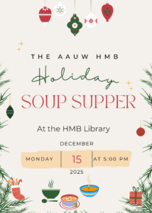 Our theme for the evening is Comfort and Joy. We will share a simple supper of soup and side dishes. Please bring your favorite mug for your soup – holiday themes, statements, or photos are encouraged!